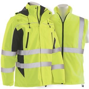 > W570R Type R, Class 3 Ripstop Jacket with Lime Removable Fleece Vest, Hi-Viz Lime